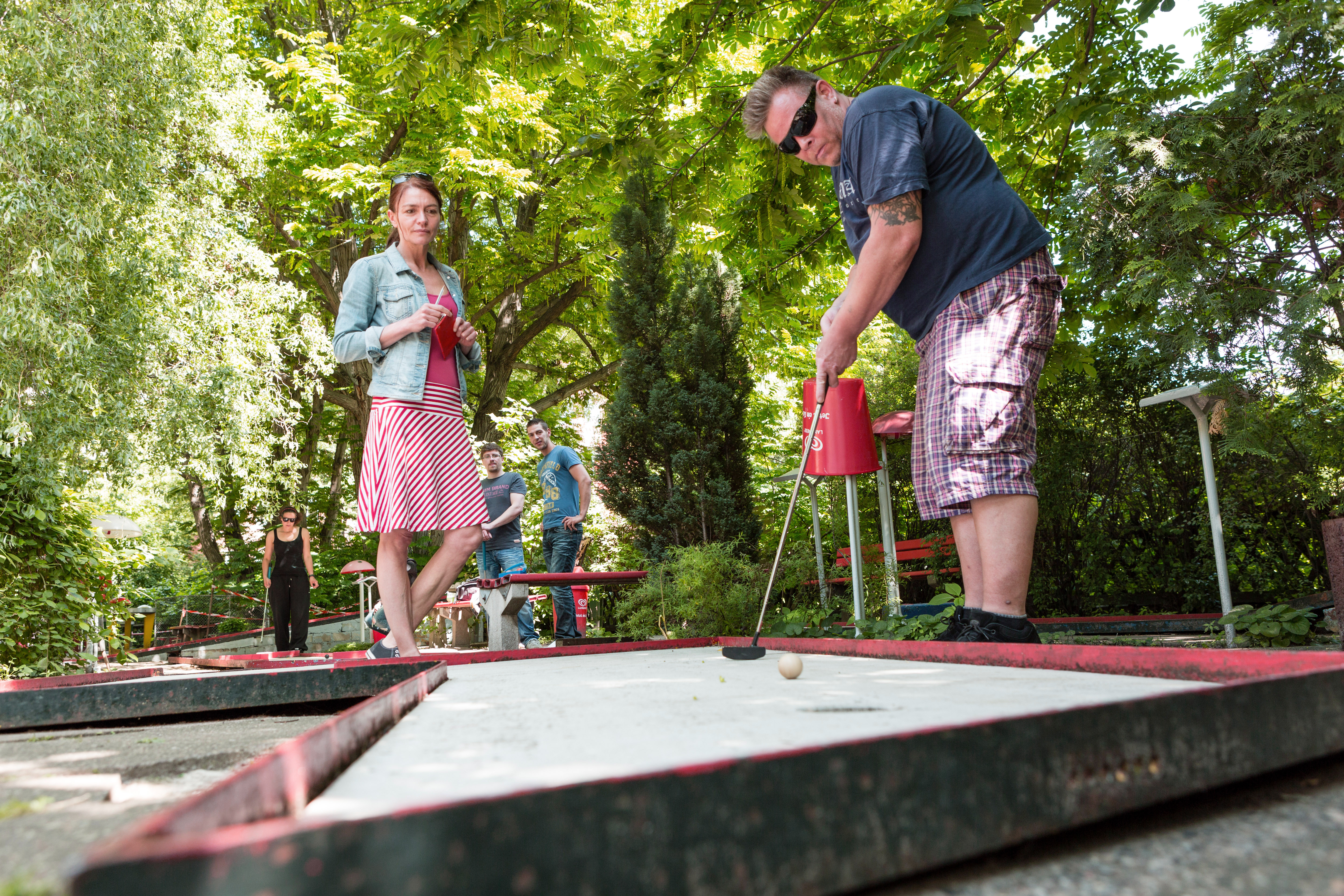 Ob Familienausflug, Feierabendspiel oder Grillabend: Hier findest du entspannte Atmosphäre, 18 liebevoll instand gehaltene Bahnen und kühle Getränke an einem Ort mit ganz viel Charme.